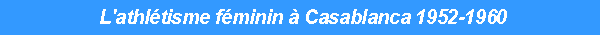 Elles avaient plus ou moins vingt ans et elles ont foulé les pistes des stades casablancais et/ou marocains lors de championnats inter-établissements scolaires ou inter-clubs, rivales et même amies, quelques-unes étaient également d'Alger, Constantine, Oran, et ces athlètes avaient pour noms :